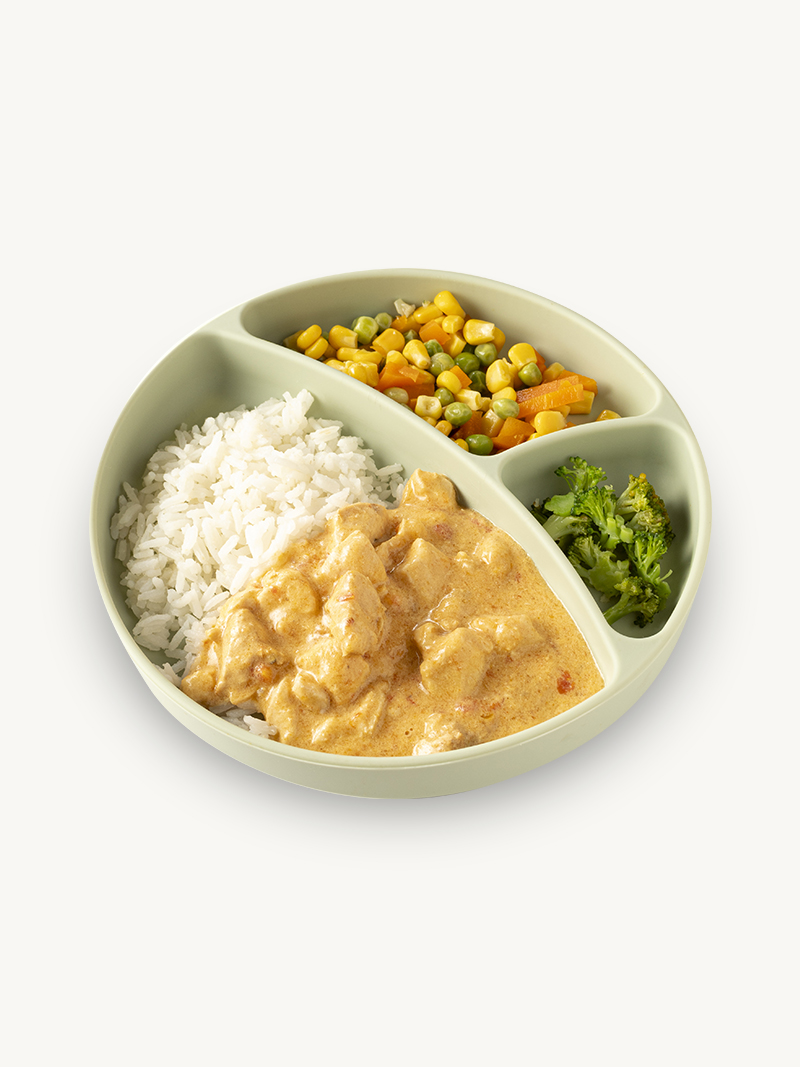Estrogonofe de frango, arroz e legumes